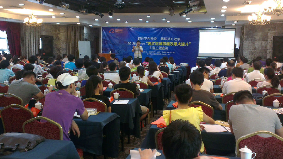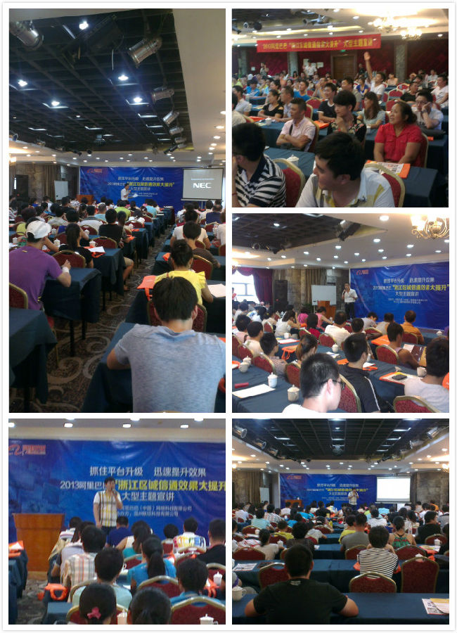 抓住平臺升級, 迅速提升效果;2013阿里巴巴“浙江區誠信通效果大提升”大型主題宣講活動在溫州金悅麗嘉大酒店金悅廳隆重舉行,出席本次活動的領導有阿里巴巴溫州服務中心聯欣科技有限公司客服部王總、技術部胡總、人事部彭老師、商學院藤老師、優秀講師李廣印主管等以及各行各業的嘉賓!